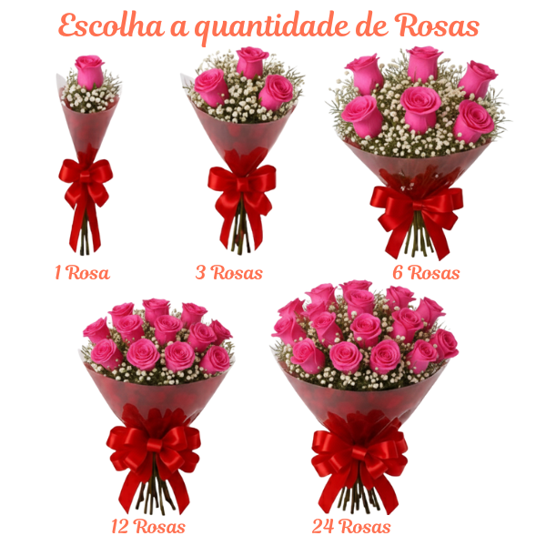 Monte seu buquê do seu jeito, escolhendo o número de Rosas que deseja.